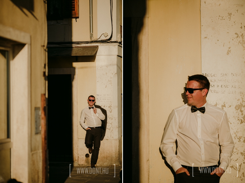 Fiúkkal kezdünk, mert a csajoknak kell még "pár perc", hogy esküvői "hangulatba" jöjjenek. Lesétálunk, a szállástól 2-3 utcát nem tudunk eljönni annyira tetszik minden egyes centiméter. Ennyit még vőlegényt nem volt időm fotózni, kihasználom....Később a csajok is csatlakoznak hozzánk, majd felváltva folytatjuk egész sötétedésig. Szinte alig mentünk pár utcát, alig hagytuk el a molót. Közelünkben halk zene duruzsol és az éttermekből kiszűrődő illatok csalogatnak vacsorára. Fantasztikus hely, lassan álomba dölünk és mindenki valami csodás dolgot álmodik...